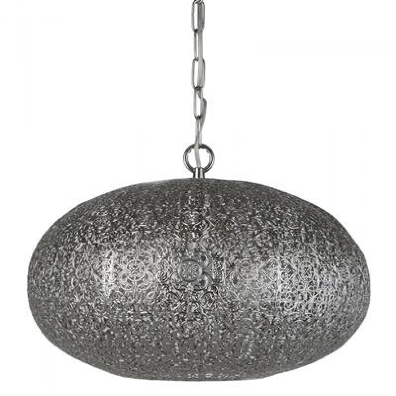 Привлеките внимание этим ярким кулоном Fretwork в марокканском стиле, который идеально подойдет для любого модного и современного дома. Стильный блестящий никелевый корпус имеет закругленную форму и отличается потрясающим детализированным дизайном. Фитинг подвешивается на прочной хромированной цепочке, что добавляет эстетики.
